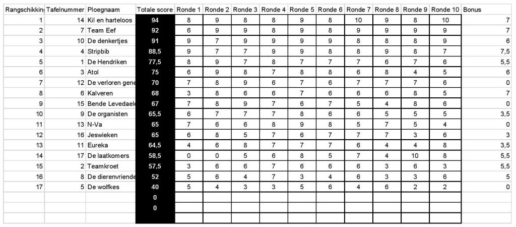 Wij van de stripbib waren ook in vorm. Uiteindelijk eindigden we net naast het podium.